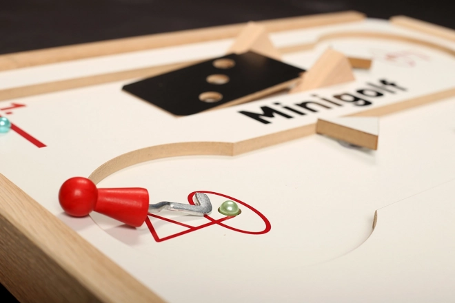 Namizni minigolf prinaša izvirno zabavo za otroke in odrasle. Štiri steze z ovirami na priseskih omogočajo poljubno razporeditev in neomejeno število kombinacij. Vsaka igra je drugačna, uri opažanje, potrpežljivost in fino motoriko. Zaradi robustnih materialov je idealen za pogosto igranje doma in v šolah.