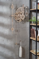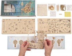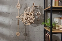 Ugears Aero so stenske mehanske ure iz kakovostne vezane plošče, ki jih sestavite sami brez lepila. Očarljiv pogled na odkrit urni mehanizem z nihalom in utežjo ponuja edinstveno izkušnjo natančnega inženirstva. Čas odčitavate z dvojnih številčnic, ki se vrtita v nasprotni smeri urinega kazalca, medtem ko dekorativni model toplozračnega balona redno naraste in se vsako polno uro znižanjem oglasi.