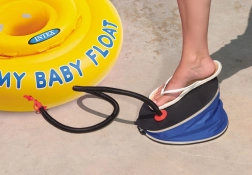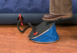 Črpalka je opremljena s posebnimi utori, ki omogočajo, da noga ostane stabilna na njeni površini, tudi med dolgotrajnim in intenzivnim črpanjem. Del pakiranja so tri univerzalni nastavki, ki so primerni za večino napihljivih izdelkov. Tako lahko enostavno nastavite nastavek in hitro napihnete vzmetnico, žogo ali vodno igrišče.