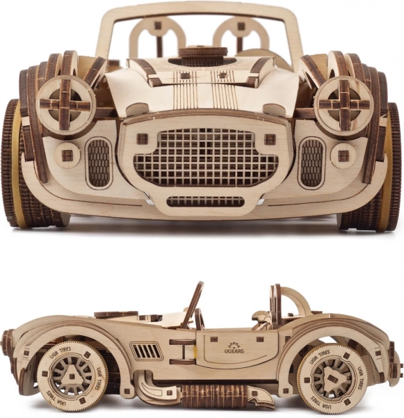 Uživajte v pristni izkušnji gradnje in vožnje. Lesena mehanska sestavljanka UGEARS Drift Cobra vsebuje 370 lasersko natančno izrezanih koščkov, ki se sestavijo brez lepila. Po sestavljanju dobite vodljiv model s funkcionalnim vzmetnim motorjem, krmilno zavoro in menjalnikom za prosti tek ter vzvratno prestavo.