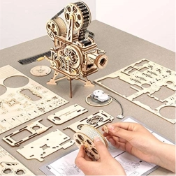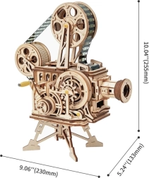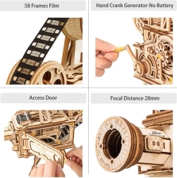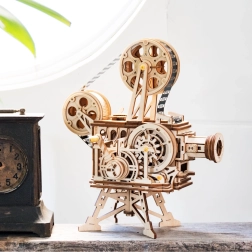 Ta lesen retro model projektorja navduši z dovršenimi prenosi, tuljavami in pristnimi detajli. Sestavite mehanizem korak za korakom, vstavite priložen filmski trak in uživajte v mini kinu doma. Zahvaljujoč ročnemu generatorju ne potrebujete baterij – dovolj je, da vrtite kljuko, in projekcija se lahko začne.