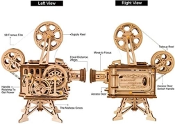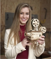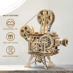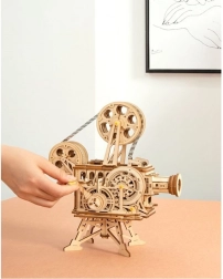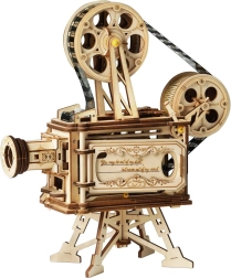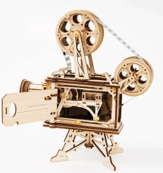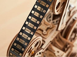 Mehanski prenosi, tuljave in patiniran videz spremenijo model v stilski okras. Idealno darilo za ljubitelje kinematografije, tehnike in 3D sestavljank.