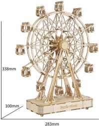 Podrobna 3D sestavljanka glasbene skrinjice s motivom klasičnega ruskega kolesa bo navdušila ljubitelje modelov in glasbe. Po sestavitvi zaigra melodijo iz filma Pot okoli sveta v 80 dneh, razveseli s kakovostnim 18‑tonskim mehanizmom z japonskimi komponentami in ponuja srednjo zahtevnost gradnje iz 232 natančno izrezanih delov iz lesa in kovine.