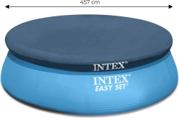 Praktična prekrivna ponjava INTEX za nadzemne okrogle bazene s premerom 457 cm ščiti vodo pred listjem, žuželkami in nečistočami. Zahvaljujoč odtočnim odprtinam se voda na površini ne nabira, ponjava pa pomaga ohranjati bolj stabilno temperaturo vode. Izdelana je iz odpornega materiala, ima 30 cm previs za varno pritrditev in je združljiva z bazeni različnih znamk z širino roba 421 cm.