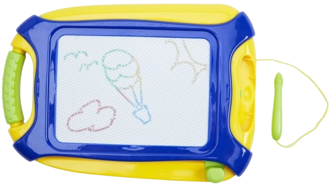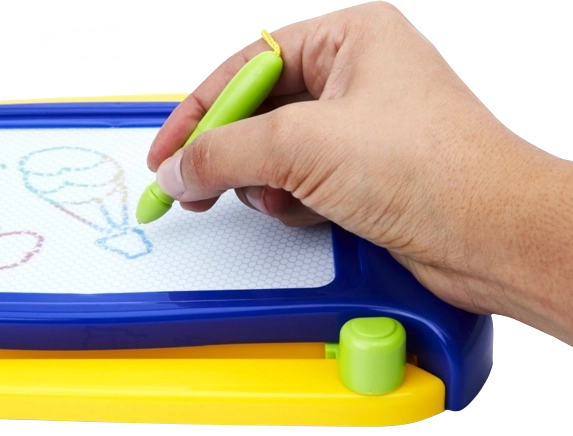 Ta magnetna risalna tabla je idealno orodje za razvoj ustvarjalnosti in fine motorike pri otrocih. Zahvaljujoč enostavno upravljivemu pisalu lahko rišejo neomejene slike, ki jih je mogoče preprosto izbrisati.