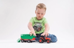 Ta podrobno izdelan plastičen traktor Zetor s prikolico je odlična izbira za otroke od 3 let dalje. Zahvaljujoč vztrajniku se zlahka zažene, gumbi aktivirajo realistične zvoke motorja in luči za bolj pristno igro. Odstranljiva prikolica omogoča prevažanje sena, živalic ali drugih tovorov ter spodbuja otroško domišljijo v kmečkih scenarijih.