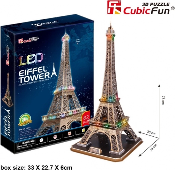 Doma si zgradite ikonični Eifflov stolp kot 3D sestavljanko iz serije CUBICFUN z LED osvetlitvijo. Deli iz kakovostne pene, prevlečene s papirjem, se enostavno sestavijo brez lepila in škarij, končni model pa izstopa kot stilna dekoracija z impresivno višino 78 cm.