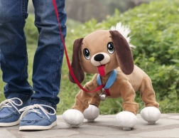 Igrača je zasnovana tako, da je varna za malčke – ima hrapave tačke za zanesljiv korak in ne potrebuje baterij, zato je vedno pripravljena na akcijo. Priložen je tudi praktičen povodec, s katerim lahko otroci kužka z lahkoto vodijo.