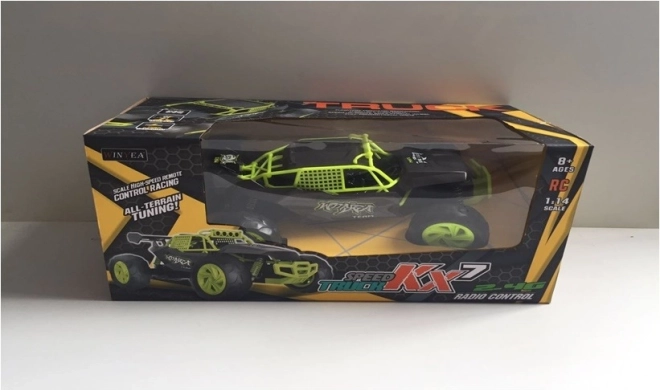 Ta terenski RC buggy je zasnovan za hitrost, vodljivost in zabavo. Zahvaljujoč merilu 1:14 nudi idealno ravnovesje med stabilnostjo in okretnostjo, tehnologija 2,4 GHz pa zagotavlja zanesljiv doseg brez motenj. Realističen videz, masivna kolesa in vidne vzmeti poudarjajo njegov dirkaški značaj.