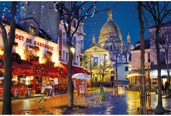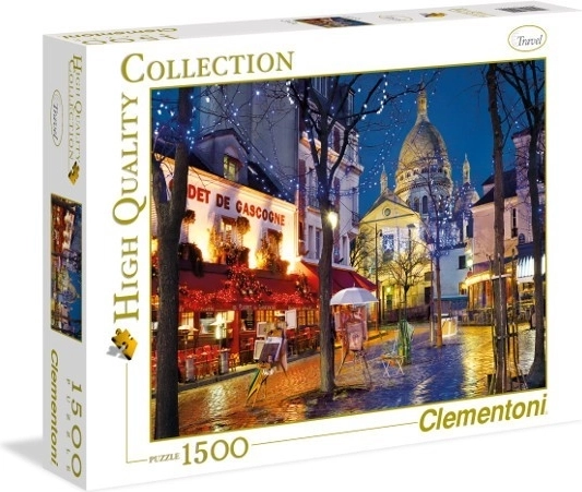 Odkrijte čar Pariza s to čudovito sestavljanko, ki ujame večerno vzdušje zgodovinske četrti Montmartre. Če radi sestavljate, je ta sestavljanka s 1500 koščki prava izbira za vas.