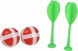 Tarča je opremljena z ježkom, na katerega se pritrdijo puščice in žogice, kar zagotavlja popolno varnost pri igri.