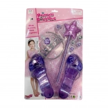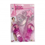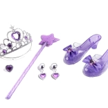 Set je na voljo v priljubljenih barvah – rožnati, vijolični in modri – z bleščečimi detajli in srčkastimi kamenčki, ki razveselijo vsako malo princeso. Odlično za igro doma, otroške zabave in preobleke.