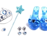 - Popolna oprema: krona, čeveljčki, čarobna paličica, uhančki na klips in prstan.