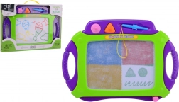 Velika barvna risalna tabla je idealna za otroke, ki radi ustvarjajo brez nereda. Široka površina spodbuja domišljijo, fino motoriko in zbranost. Zaradi lahke konstrukcije in stranskih držal se tabla zlahka prenaša doma in na poti.