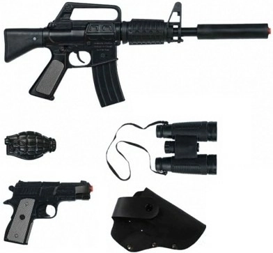 - Kovinska pištola, dušilec, daljnogled, policijska značka, etui za pištolo, policijski mitraljez