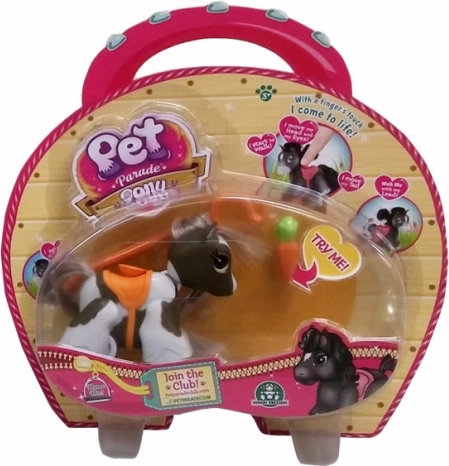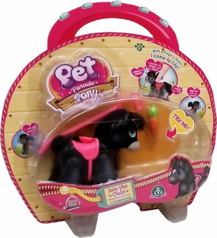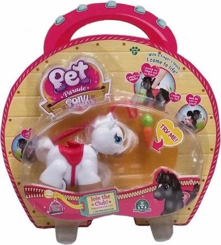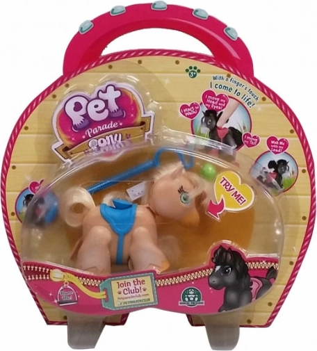Poniji iz serije Pet Parade so kot živi. Opazujte, kako vaš poni oživi pod vašim dotikom in prisrčno premika glavo, rep in nogice. Pripnite povodec na njegov smrček in se odpravite na sprehod – glejte, kako zabavno premika noge in mežika.