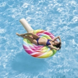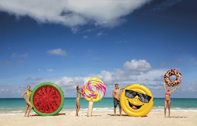 Uživajte v poletnih radostih s tem napihljivim ležalnikom v obliki lizike, ki bo vašemu bazenu dodal barvito veselje.
