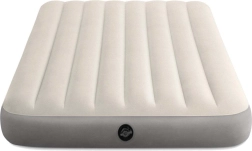Napihljiva dvojna vzmetnica INtex z žametno mehko, vodoodporno površino zagotavlja stabilno in udobno spanje doma, na vikendu ali na poti. Notranja konstrukcija z ojačitvami Dura‑Beam Fiber enakomerno razporeja pritisk in podpira pravilen položaj hrbtenice za miren in zdrav spanec.