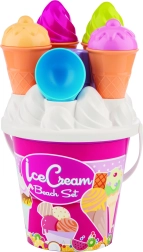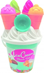 Barvita komplet s sladolednimi motivi prinaša veselje in zabavo v vsak otroški dan na plaži.
