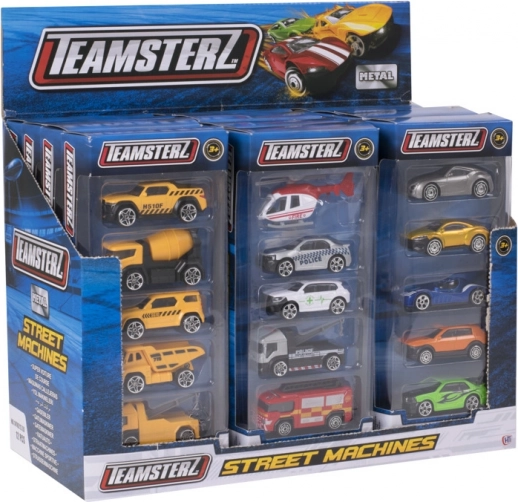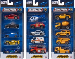 Set Teamsterz Street Machines 5 Pack bo razveselil vsakega malega ljubitelja avtomobilov. V pakiranju najdete pisano kombinacijo vozil – od osebnih preko delovnih strojev do interventnih vozil – pogosto tudi helikopter za akcijske posredovalne naloge iz zraka. Zaradi kompaktne velikosti so idealni za doma, na poti in za zbirko.