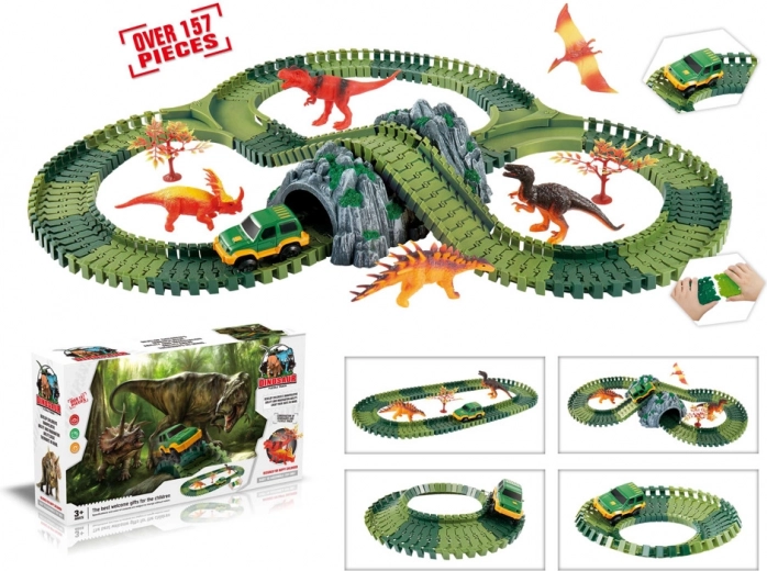 Paket vsebuje: variabilno sestavljivo progo, 5 prazgodovinskih živali, 2 drevesi, svetleči avtomobilček 9,5 × 5,5 cm. Avtomobilček deluje na 2 × 1,5 V bateriji AA – baterije niso priložene.