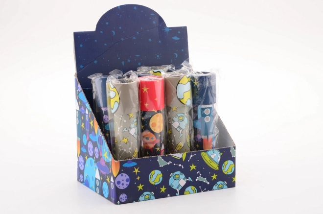 Klasični plastični kalejdoskop ponuja neskončno predstavo spreminjajočih se barvnih vzorcev. Z dolžino 23,5 cm ga udobno držijo tudi mlajši otroci, hkrati pa pomaga razvijati domišljijo, zbranost in fino motoriko. Odlična izbira za zabavo, ki ne potrebuje baterij.