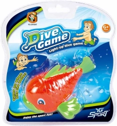 Svetleča potapljaška ribica vsako kopanje in razigrano čofotanje v bazenu spremeni v zabavno igro. Po padcu v vodo se samodejno aktivira lučka, ki otroke motivira, da ribico najdejo in jo prinesejo na površje. Odlična za igrivo učenje dihanja v vodo, potapljanja in orientacije pod gladino.