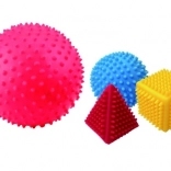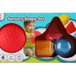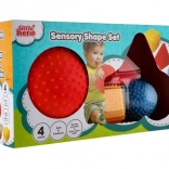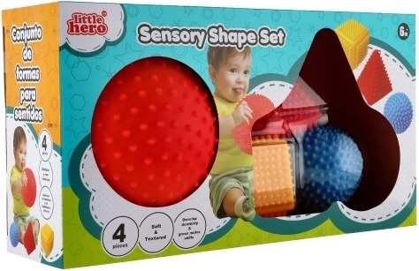 Senzorični komplet geometrijskih oblik LITTLE HERO bo navdušil vsakega radovednega otroka. Raznolike površine in izrazite barve spodbujajo čutno zaznavanje, medtem ko bodičasta struktura olajša prijem tudi najmanjšim ročicam. Pri rokovanju s posameznimi oblikami otroci naravno vadijo koordinacijo roka–oko in se učijo prepoznavati razlike med oblikami in barvami.