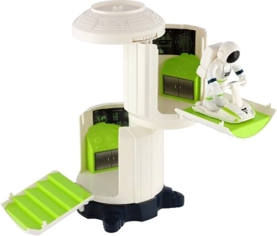 Ta realistična vesoljska postaja otroke popelje v svet vesoljskih misij. Dva nadzorna prostora lahko po potrebi obračate, zato si zlahka ustvarite idealno zaledje za vzlete, pristanke in raziskovanje. Vgrajeni svetlobni in zvočni učinki spodbujajo domišljijo in igri dodajo vzdušje prave misije.
