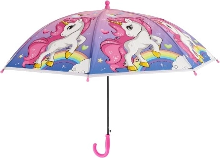Popestrite deževne dni s tem igrivim otroškim dežnikom z motivom samoroga. Ponuja avtomatsko odpiranje, udoben ukrivljen ročaj in vzdržljivo konstrukcijo iz plastike in kovine. Idealen za šolo, vrtec in izlete.
