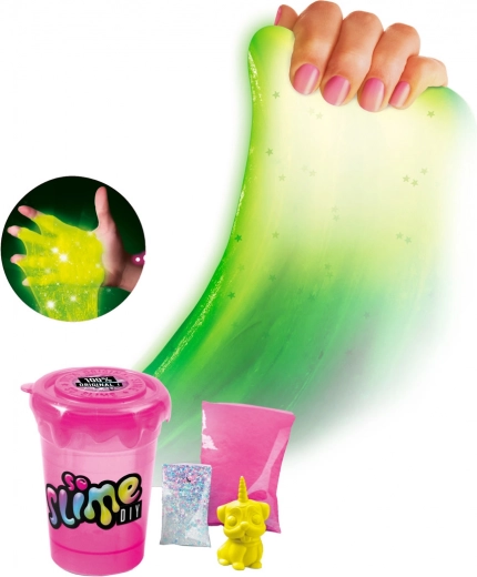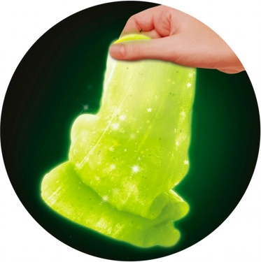 Naredite svoj lastni sluz. V lonček nasujte prašek, dodajte bleščice in figurico. Nalijte vodo do oznake, zaprite lonček in mešanico dobro pretresite. Nato lonček odprite in počakajte pet minut. Sluz je pripravljena. Kombinirajte barve, dodajte bleščice in uživajte v pravi zabavi s sluzjo. Sveti v temi. Za otroke od 6 let.