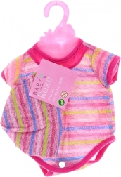 Podarite punčkam novo garderobo s pisano kolekcijo oblačil BABY ROSE za punčke 40–45 cm. Oblačila so lahka, prijetna na dotik in zaradi zapenjanja primerna tudi za manjše otroške roke. Vsak kos je pregledno nameščen na plastičnem obešalniku v zaščitni vrečki.