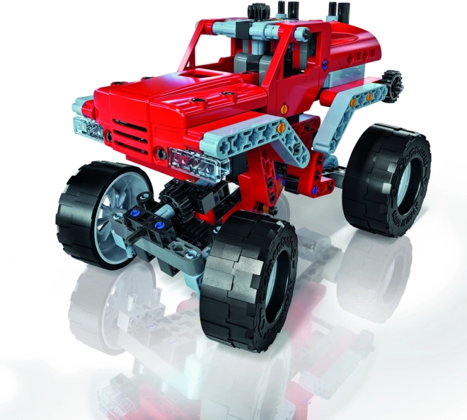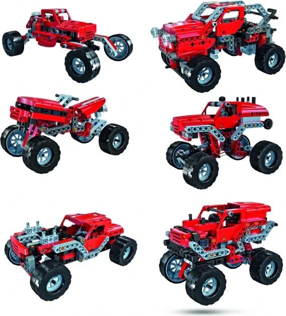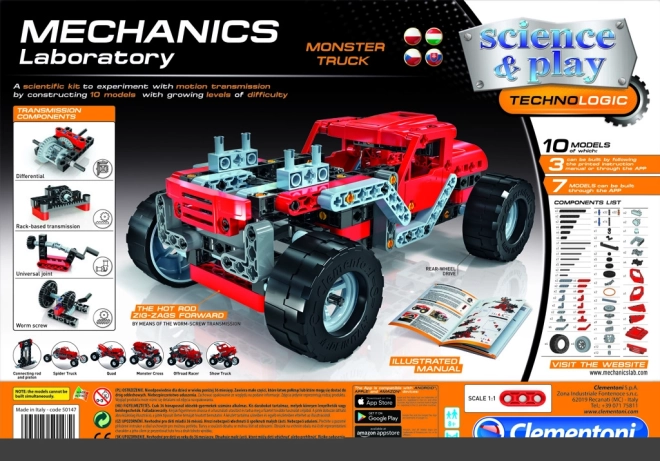 Komplet Mehanski laboratorij Monster Truck je idealen za mlade navdušence nad tehnologijo in strojništvom. V notranjosti boste našli več kot 200 delov, vključno z diferencialom, zobato letev-kronskim volanom (rack and pinion) in kardanskim zglobom. S tem kompletom otroci odkrivajo in ustvarjajo 10 fantastičnih modelov monster truckov ter se učijo osnov mehanike.