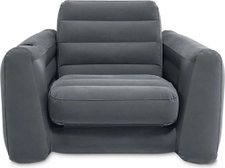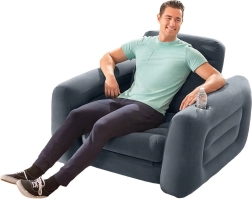 Napihljiv stol in postelja 2-v-1 znamke INTEX ponuja maksimalno udobje in prilagodljivost s preprosto možnostjo preoblikovanja v ležalnik, popoln za uporabo doma ali na počitnicah.