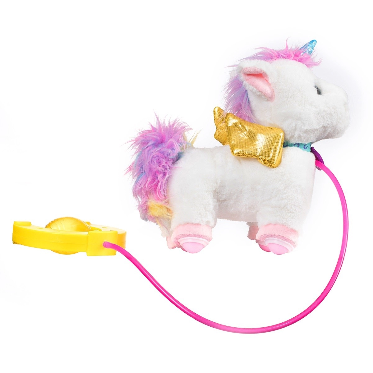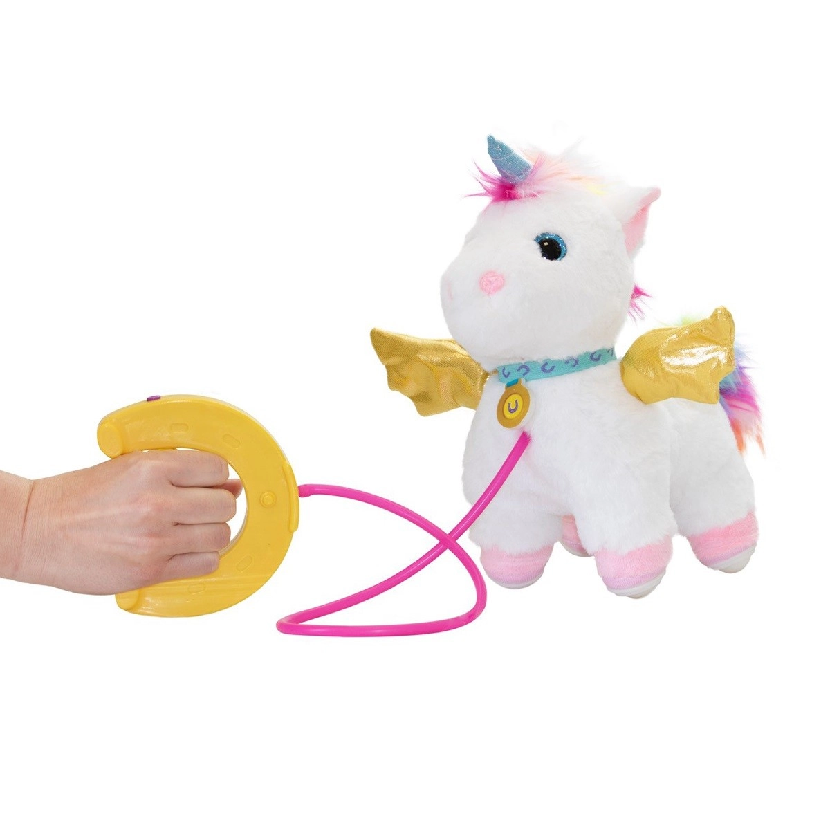 Prisrčni interaktivni samorog Lucky bo razveselil vsakega otroka – dovolj je, da vzamete povodec in plišasta igrača bo šla za vami. Ima stabilne tačke s posebnimi kroglicami za zanesljivo stanje tudi pri igri mlajših otrok. V povodcu je vgrajena zračna ročna črpalka, ki napihne ušesa in rep, z gibanjem aktiviran zvočni čip pa doda igri še več zabave.