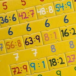 Uganka LARSEN Matematika ponuja zabaven način za vadbo deljenja. Otroci se lahko učijo deliti z iskanjem pravilnih odgovorov s pomočjo 81 originalnih kosov, ki jih je mogoče postaviti le na pravilno mesto.