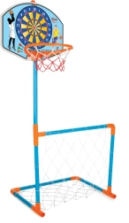 Ta praktičen set 2v1 prinaša dva priljubljena športa v eno kompaktno konstrukcijo. Odlično se prilega na vrt, dvorišče ali otroško igrišče in spodbuja aktivno preživljanje časa na svežem zraku. Zaradi združljivosti z originalno košarkarsko žogo boste uživali v pristni izkušnji igre.