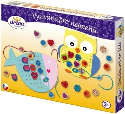 Ta vezenje set je idealen za razvoj motoričnih veščin in ustvarjalnosti pri otrocih od 3. leta starosti. S pomočjo barvnih predlog v obliki sove in ribice se otroci naučijo natančnosti in potrpežljivosti.