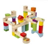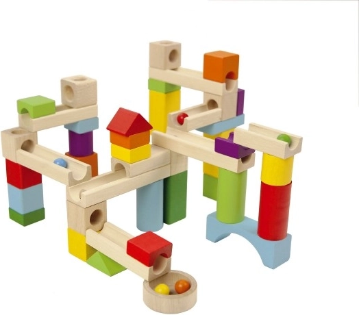 Ta lesena kroglična steza ponuja različne poti za kroglice, kar spodbuja kreativnost in razvoj motoričnih sposobnosti.