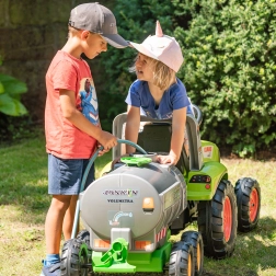 Ta otroška cisterna JOSKIN z licenco pravega proizvajalca kmetijske mehanizacije ponuja avtentične podrobnosti in vzdržljivo zasnovo za igro na prostem. Otroci lahko napolnijo rezervoar z vodo, zalivajo gredice ter urijo fino motoriko in domišljijo. Kolesa iz kakovostne plastike zagotavljajo gladko vožnjo po vrtu.