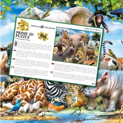 Odkrijte fascinanten svet sestavljanja s 3D sestavljanko Afriški nasmeh. Poseben lentikularni tisk ustvarja izrazit 3D optični učinek, ki prinaša realističen občutek globine in oživi motive afriške favne. Končna slika bo čudovita dekoracija otroške sobe, hkrati pa razvija potrpežljivost, zbranost in fino motoriko.