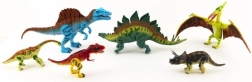 Komplet vsebuje 6 različnih vrst dinozavrov z izrazitimi detajli – idealno za tematske igre in prvo spoznavanje s prazgodovino.