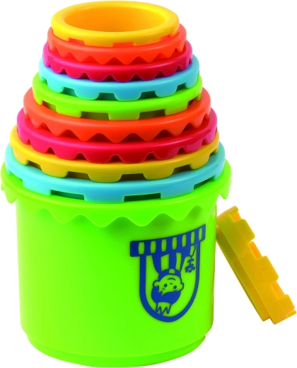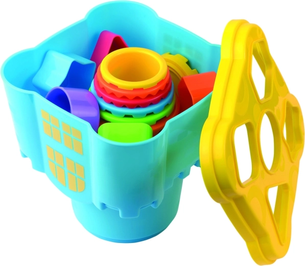 Zlagajte in razvrščajte barve, velikosti in številke. Zgradite visok grad do 73 cm. Obrnite osnovo na glavo in dobili boste vedro z vstavljanko – ujemite oblike z ustreznimi odprtinami. Komplet 18 kosov.