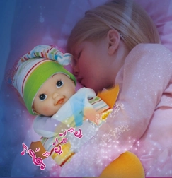 Interaktivne funkcije navdušijo otroke – punčka predvaja nežno glasbo in prižiga lučke za še večje veselje pri igri.