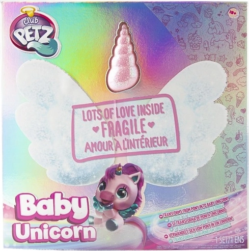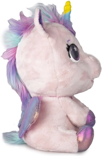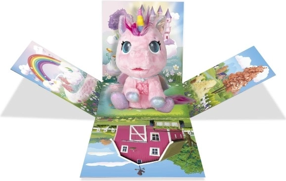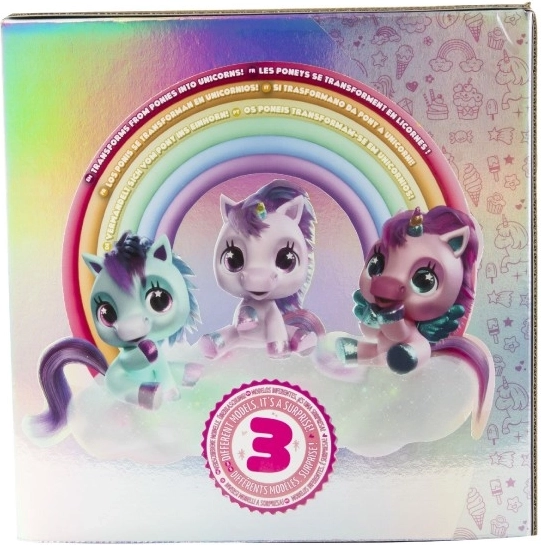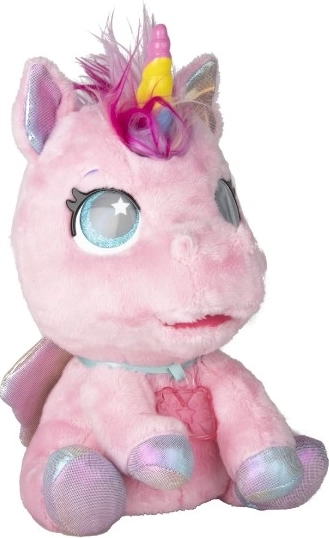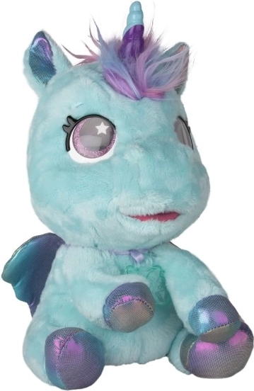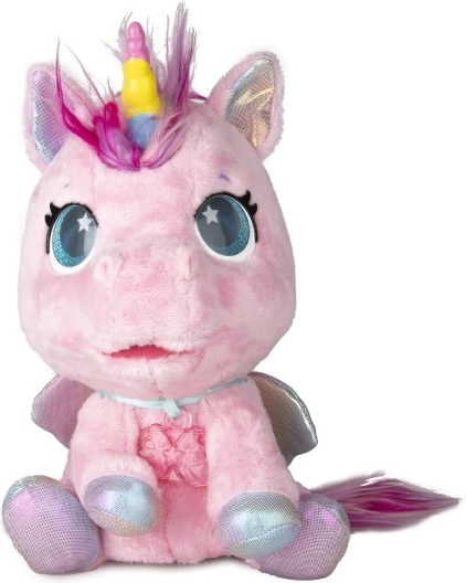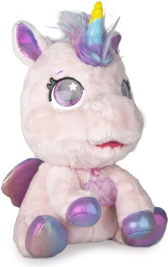 Interaktivni plišasti poni, ki bo postal vaš najljubši prijatelj. Na dotike in skrb se odziva z več kot 30 zvoki in dejanji – od veselega hinetja do nežnega brundanja. S postopno preobrazbo v tri čarobne faze boste opazovali, kako mu raste barvni rog in kako se poni spremeni v čudovitega samoroga.