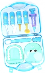 Vključena so otroška zobozdravniška orodja, kot so ogledalce, zobna ščetka in injekcija – idealno za simulacijo pregleda in posega.
