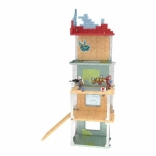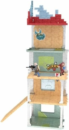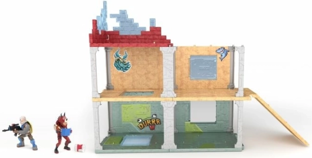 Ta igralni set natančno posnema strukture iz Fortnitea, vključno s stolpom z rdečo streho in lesenimi paneli.