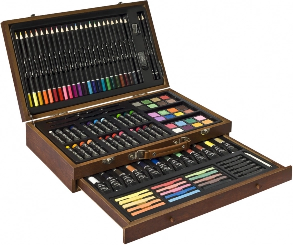 Umetniški komplet 123 kosov v leseni kovček