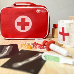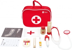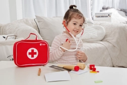 Komplet od Classic World vsebuje vse, kar mali zdravnik potrebuje za igro zdravnika. Otroci lahko poslušajo srčni utrip pacientov (plišasti medvedki, punčke) s pomočjo stetoskopa, 'merijo' temperaturo s termometrom, 'dajo' injekcije ali ponujajo nujna zdravila. Igra zdravnika ni le priljubljena igra vlog, ampak tudi poučevanje empatije in sodelovanja, kar je zelo pomembno za socialne odnose. Ta komplet podpira razvoj domišljije in učenje reševanja problemov.