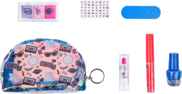 Stilski darilni make-up set CREATE IT! s praktično torbico na zadrgo bo razveselil vse male lepotičke. Vsebuje vse potrebno za igrivo urejanje videza: senčila za oči, lak za nohte, glos za ustnice, šminko, pilico in nalepke za nohte. Odlično kot darilo tako za vsakodnevno zabavo doma kot na poti.